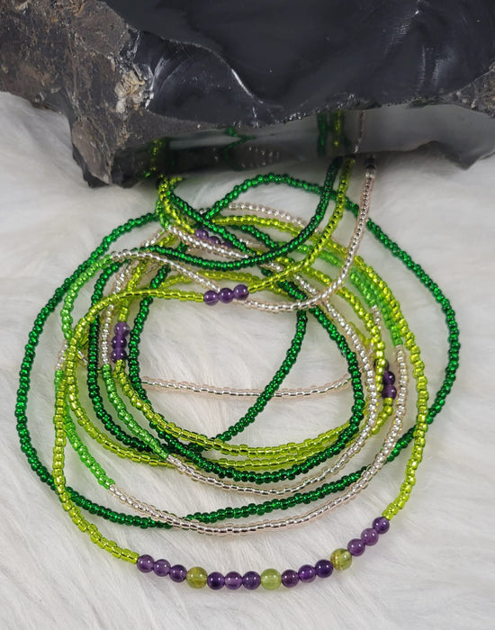Hand Crafted3pc waistbead set made with natural Amethyst and Peridot